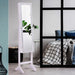 Colour: Black/White Material: P2 MDF, Glass Product Dimension: 36 cm x 33 cm x 153 cm (L x W x H) Full Length Mirror Dimension: 23 cm x 101 cm (L x W) Net Weight: 9 kg Package Includes: 1 x Jewelry Cabinet 1 x Instruction Manual