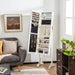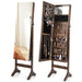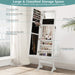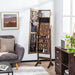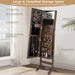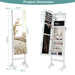 The standing jewellery cabinet will be a great choice if you are looking for a jewellery organizer. This jewelry organizer combines a full-length mirror, jewelry cabinet and cosmetic cabinet, which maximizes the limited space. Also, the full-length mirror is frameless to offer a wider view. In addition, there is a makeup mirror built inside the jewellery cabinet to make makeup more convenient. Featuring slots, hooks, rods and shelves, you can organize your jewellery and makeup well. And the lockable cabinet door adds more security. The structure made of premium MDF material is stable and durable. Besides, the assembly is easy and quick with the instructions and accessories. If you are looking for such a product, don't hesitate to place an order! Adjustable Full-length and Frameless Mirror: The full-length mirror of this standing jewelry cabinet is frameless, which provides a wider view from head to toe comparing framed mirror. Also, the mirrored jewellery cabinet features 4 adjustable tilt angles, allowing you to find the desired angle according to your needs. Large and Classified Storage Space: This compact jewellery armoire is designed with 75 earring slots, 40 stud earring holes, 2 hanging rods, 10 hooks, 48 ring slots and 4 storage shelves. With this jewellery storage cabinet maximizing the utilization of the space, you are able to be away from clutter and keep your items in order. Built with Lockable Door and Makeup Mirror: The jewellery storage organiser is equipped with a lockable door which avoids the door accidental opening and keeps items in place when you tilt the mirror. Moreover, the built-in mirror is convenient for makeup, avoiding frequent opening and closing of the cabinet door. Stable Structure and Durable Material: The lockable jewellery storage armoire is made of high-quality MDF material and steel hinges, capable of long-time service. Also, the triangular supportive feet ensure high stability while using. In addition, the interior space is covered with soft velvet to protect valuable jewellery from scratches. 3-in-1 Design for Various Scenarios: This 3-in-1 multipurpose jewellery unit combines a full-length mirror, jewellery cabinet and makeup cabinet in one, which is space-saving and suitable for many places like bedroom, locker room and more. Also, the assembly is easy with instruction and accessories.