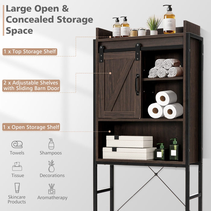 With its 4-tier shelving system, this storage unit isn't just a marvel of modern engineering—it's a haven for bathroom essentials. The open shelves provide easy access to items you use daily, while the enclosed shelves behind a fashionable sliding barn door keep your space looking tidy and stylish. Moreover, the engineering revolution doesn't stop there—the cabinet features an adjustable shelf to accommodate items of varying heights effortlessly.