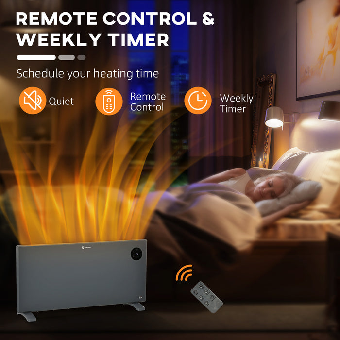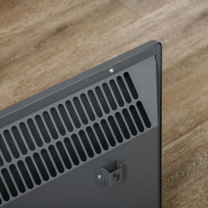 This heater boasts a slim profile, which means it seamlessly integrates into your living space without being obtrusive. Its sleek design, coupled with a tasteful neutral color, complements a modern aesthetic. Whether standing freely or mounted on the wall, the heater maintains its elegance, and the provided fixing accessories make installation a breeze.