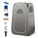 Color: Black/Coffee/Gray Material: Stainless Steel, Waterproof Fabric, ABS, Oxford Cloth, Metal Dimensions of Sauna Tent: 87 x 87 x 147 cm (L x W x H) Size of Foldable Chair: 45 x 44 x 69 cm (L x W x H) Height of Seat: 38 cm Load Capacity of Chair: 90 kg Size of Steam Generator: 22 x 19.5 x 30.5 cm (L x W x H) Capacity of Steam Generator: 3L Size of Wooden Foot Massager: 27 x 12 cm (L x W) Size of Sweating-Absorbing Mat: 83 x 76 cm (L x W) Length of Each Soft Hose: 35 cm, 46 cm Adjustable Temperature Range: 35-63℃ Adjustable Timer Range: 15-90 min Max Remote Control Distance: 10 m Net Weight: 7 kg Package Includes: 1 x Pop-Up Sauna Tent 1 x Steam Generator 1 x Remote Control 1 x Medicine Box 1 x Wooden Foot Massager 1 x Sweating-Absorbing Mat 1 x Foldable Sauna Chair 1 x Carrying Bag 1 x User Guide