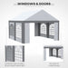 This sizable event canopy stands with impressive dimensions of 400L x 395W x 315H cm, with a welcoming eaves height of 202 cm, making it incredibly roomy and accessible. It comes in a sophisticated white and grey color palette that complements any outdoor space.
