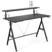This ergonomic E-sports gaming desk with monitor stand is a perfect choice for your home or office. The wide desktop has ample space for computer monitors, books, keyboards, speakers, and game memorabilia. Suitable for use as a computer desk, study desk, home office desk or gaming desk. If you are looking for an ergonomic gaming desk like this, do not hesitate to place an order! ● Textured Carbon Fibre Desktop: The spacious desktop, measuring 120 cm x 66 cm, provides ample space for your game console or laptop, monitor, keyboard and other gaming accessories. The desk is covered in a premium carbon fibre textured coating which is waterproof, scratchproof, and skin-friendly, providing a better gaming experience.● Ergonomic Design: Ergonomically designed with a curved front, the desk allows you to get closer to the monitor while supporting your wrists and forearms. The monitor stand elevates your monitor to eye level, encouraging you to sit correctly,● Sturdy and Durable Construction: Crafted from thick and durable MDF, this gaming desk is very sturdy and can withstand the test of time. The steel tubular frame, with support rods, increases the overall stability and the adjustable foot pads help to keep the gaming desk stable even on uneven floors● Practical, Multipurpose Desk: The gaming desk is equipped with a cup holder, controller rack, headphone hook, 2 speaker stands and 2 cable holes offering greater convenience and organisation. Thanks to the multifunctional design, the desk can be used, as not only a gaming desk, but also a home office desk or writing table.● Easy to Assemble and Maintain: Following the detailed instruction manual, the gaming desk is quick and easy to assemble. Additionally, the smooth, waterproof desk is easy to clean with a damp cloth.