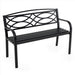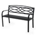Meticulously crafted from heavy-duty metal pipes, this bench with well-made details promises longevity and sturdiness with a touch of style. The spacious sitting area seats up to 2 people comfortably with a maximum weight capacity of 300kg. Additionally, the thoughtfully designed contoured seat and curved armrests ensure relaxing moments for hours. The slatted design and beautiful backrest patterns not only provide ventilation but also add a visually appealing element to any garden, patio, or poolside area. Elevate your outdoor decoration with this versatile and charming seating solution. Bullet Point:Robust Metal Construction: Constructed of heavy-duty metal pipes which are well-coated and anti-deformation, this patio bench ensures optimal sturdiness and prolonged outdoor use. Moreover, non-slip footpads enhance stability. Spacious and Strong Seating: Accommodating up to 2 people with 107cm seat length, this bench is ideal for you to enjoy shared relaxation with your loved one. And the 300kg max load makes the loveseat more reliable for long-time sitting. Enhanced Comfort Design: Engineered for relaxation, this metal 2-seat chair includes a contoured seat and curved armrests, suitable for extended periods of sitting in any outdoor setting. Elegant Slatted Design: Featuring a slatted seat, this metal bench not only offers stylish lines but also ensures ventilation. The appealing patterns on the backrest make the patio bench more eye-catching in your relaxing space. Wide Outdoor Use: Perfectly suited for garden, patio, or poolside, this 2-person outdoor seating furniture combines practicality with an enduring design. Overall dimension: 49 x 116 x 83cm (L x W x H).