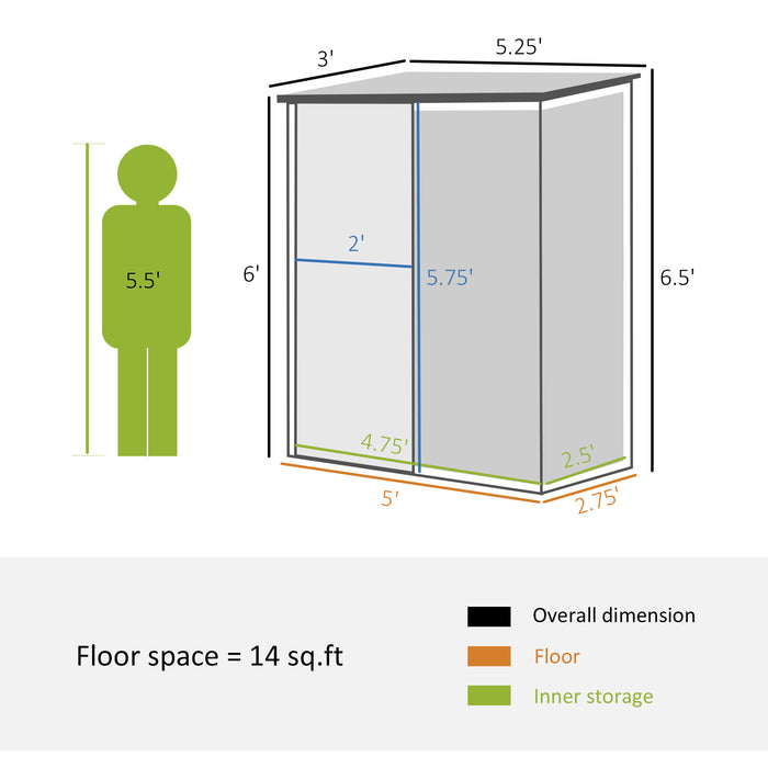 Welcome to the ultimate solution for your outdoor storage needs. This spacious 5.3 x 3.1ft metal shed offers an open and airy alcove, perfect for safeguarding tools, machinery, and other essentials for your garden or outdoor spaces.