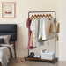 The modern combination of black metal and brown engineered wood adds a touch of class to any space, ensuring that this garment rack will be a versatile and welcome addition to your home or commercial space.