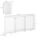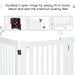 The gate features a pristine white finish with a minimalist design, allowing it to blend harmoniously with your home interior. The robust MDF frame provides durability and stability, ensuring that your pet stays where they're supposed to. Stability is further enhanced by two strong support feet that anchor the structure.