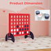Color: Blue/Red Materials: Pine Wood, Plywood, PP Product Dimension: 80 x 35 x 75 cm (L x W x H) Size of Game Board: 80 x 60 cm (L x W) Diameter of Chip: 9 cm Net Weight: 4 kg Package Includes: 1 x 4-in-a-row Game 1 x Carrying Bag 21 x Blue Chips 21 x White Chips 1 x Instruction
