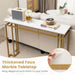 Elevate your living area with this stylish console table. With a gold metallic frame and a stunning white faux marble tabletop, your space gets an instant boost, morphing any room into an refined sanctuary.