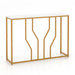 The console table's surface, with its rich white faux marble finish, represents a pinnacle of craftsmanship, adding a touch of class to your existing décor. The harmonious combination with its geometric golden frame gives the table a modern, yet timeless, charm that effortlessly enhances any room.