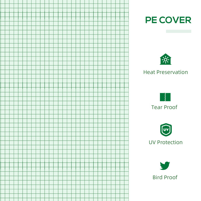 Encased in a robust PE plastic cover, your verdant refuge is shielded from moderate weather elements. This cover stands strong against water and UV rays, ensuring your plant friends receive just the right amount of sunshine and moisture. Plus, with10 cm extended edges to anchor into the ground, you're assured of an extra layer of stability and securance.
