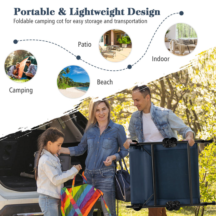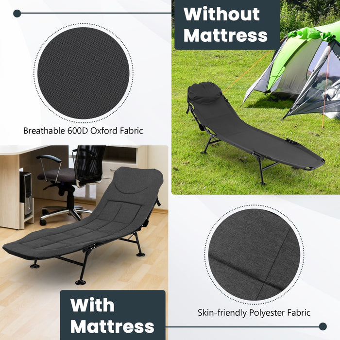 Designed with your well-being in mind, the sleeping cot comes with a 6-position adjustable backrest. Whether you want to immerse in a book, sunbathe, play games, or enjoy a deep sleep, this folding lounge chair has got you covered. Adjusting the tilt mechanism is also a breeze.