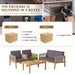 Designed not only for beauty but also for ease, our set includes cushion covers with zippers to facilitate simple removal and cleaning. The acacia wood is finished with a smooth, waterproof treatment, prioritizing both durability and straightforward upkeep.