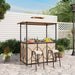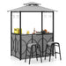 Transform Your Outdoor Space into a Stylish and Functional Gathering Spot! This 3-piece patio bar set includes a stylish grill gazebo, 2 ergonomic bar stools, and a multifunctional bar table, which is perfectly designed to fit any backyard, garden, or poolside space. Tailored for both comfort and convenience, the set includes a robust powder-coated metal frame gazebo with flame-retardant polyester canopy that protects against sun and wind. More than that, the bar table is crowned with a heat-resistant tempered glass top for serving refreshments and equipped with storage shelves and glass holders to keep essentials within easy reach. Additionally, the bar stools are ergonomically designed with U-shaped mesh fabric seats and footrests, which are perfect for long conversations and relaxation. This set not only combines functional addition but also enhances your outdoor decor with its cohesive and elegant appearance. Complete Outdoor Set: This 3-piece patio bar set includes a grill gazebo measured 121 x 194 x 242 cm (L x W x H), and 2 bar stools measured 38 x 55 x 70 cm (L x W x H). It is suitable for enjoying BBQ, eating meals, or having a drink with your family or friends in the great outdoors. Sturdy and Stable Construction: The gazebo and stools are supported by heavy-duty powder-coated metal frames, ensuring excellent sturdiness and long-term outdoor use. Moreover, stability is further ensured by ground plates and stake fixations, which anchor the structure effectively on the ground. Practical Bar Table: The patio shelter is crowned with a heat-resistant tempered glass top that offers a safe and sturdy surface for hot beverages and meals. And there are 2-tier slatted shelves on 3 sides, offering ample storage space for food, drinks, and utensils. More than that, it provides 4-row top glass holders to keep your wine glasses organized and within reach. Premium Double-Tier Canopy: The soft canopy adopts a double-tier vented top, which not only allows for optimal ventilation but also adds stability on windy days. Besides, the canopy is crafted of premium polyester fabric, offering better protection for sun and fire, ensuring long-lasting durability. Comfy Sitting Experience: The bar stools are designed with ergonomic U-shaped seats that are crafted of breathable mesh fabric, which could conform to the natural body shape while allowing for air circulation. Additionally, there are relaxed footrests, making it a pleasure to sit for extended periods.