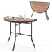 Discover the charm and practicality of this half-round event table! High-quality SPC tabletop boasts excellent wear-resistance and durability. Plus, the robust metal structure ensures longevity, making it a reliable addition to your living space. Additionally, this patio banquet table is foldable and portable, allowing for effortless storage and transportation. To enhance convenience, the semi circle dining table can be used alone or together, which works well in both indoor and outdoor spaces like patio, garden, porch, or poolside. Bullet Point: Unique Half-Round Tabletop: The half-round shape provides a unique look, perfect for placing against walls or integrating into any indoor and outdoor place. The folding event table can be used alone or together, either for storing food, beverages or displaying decorative items. Strength Meets Beauty: Crafted from high-quality SPC material, the semi circle dining table is wear-resistant, waterproof and heat-resistant, ensuring long-lasting use. Its imitation wood grain enhances the look of any space. Heavy-duty Metal Frame: Built with powder-coated metal frame, the folding bistro table boasts great stability and durability, supporting up to 50 kg. Additionally, non-slip foot pads prevent the floor from scratches. Foldable and Portable Design: No assembly required! The banquet table can be quickly folded flat for convenient storage when not in use. Besides, it is convenient to carry for indoor and outdoor events, such as family reunion, party, and banquets. Easy Cleaning and Upkeep: The half-round banquet table features easy-to-clean surface for quick wipe-downs, saving much effort and time. Meanwhile, the smooth table corners prevent accidental bumps or scratches.