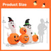 The 2 ghosts and 4 pumpkins standing in a row is a good choice if you are decorating the yard for the coming Halloween. Each ghost and pumpkin are distinguishable and eye-catching especially when the night falls and the LED lights brighten each element. As for the assembly, you may feel assured that only a few steps are required. Because a waterproof blower is included, you don't even bother to prepare other inflating tools. What's more, the 5 ground stakes and 5 ropes are designed for you to fix the lightweight inflatable decoration. What's also worth mentioning is that the fixed sandbag will also help stabilize the decoration. If you are looking for Halloween decoration like this, do not hesitate to place an order! Perfect Decoration for Halloween: Combining the classic holiday decoration elements, namely ghosts and pumpkins, this inflatable decoration is a perfect addition to the yard, garden and lawn for celebrating Halloween. With vivid expressions, the ghosts and pumpkins look funny and attractive especially for kids.Eye-catching LED Light: As a must have for Halloween nighttime display, the inflatable pumpkin and ghost combo will become a big hit among the party guests and trick-or-treaters. The 6 built-in LED lights make every element visible at night and create a delightful holiday ambience to cheer everyone up.How to Inflate and Deflate: The setup is hassle-free, as the Halloween yard decoration can inflate itself with the built-in powerful blower. What you need to do is zip up and plug in. When it is not in use, you can unzip the bottom zipper and quickly exhaust the air. What's more, the blower is waterproof and the adapter is certified to be safe in use.Multiple Fixing Accessories: In case of being blown down, the blow-up decoration is fitted with a sandbag to add weight and keep the unit standing upright. Meanwhile, the package also provides you with 5 extra ropes and 5 ground stakes, so that you can peg the Halloween decoration down to the ground for superior stability.High-strength Polyester Material: What's also crucial for the Halloween inflatable ghost to stay outdoors is that the high-strength polyester fabric can resist to mild rains and certain challenges from the nature. The thickened material features a longer service life, so that next holiday you take it out, you'll find it still in good condition.