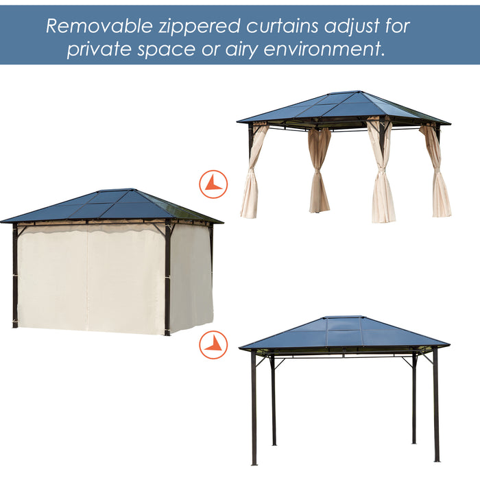 Introducing a stately Outsunny garden gazebo to transform any outdoor area into a refined retreat. Whether hosting a serene garden party or seeking a quiet nook for relaxation, this gazebo is designed to enhance your outdoor living experience. Its polycarbonate roofing ensures a comfortable ambiance by providing shelter against UV exposure and mild weather conditions.