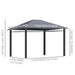 With dimensions generously stretching to 3.98L x 3W x 2.62H meters, this gazebo gifts you with a vast haven to share with friends and family. The heightened eave and crossbeam design creates an open, airy environment perfect for celebrations, casual brunches or simply unwinding amidst nature.