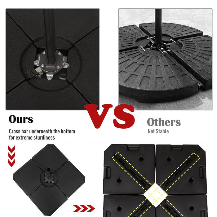 Welcome to the ultimate solution for securing your outdoor shade umbrellas. Our newly designed four-piece base is the perfect accessory to ensure your umbrellas remain steady throughout all your summer gatherings. Ideal for cantilever and Roma-style parasols, our base not only provides stability against breezes but also stands firm during unpredictable weather events.
