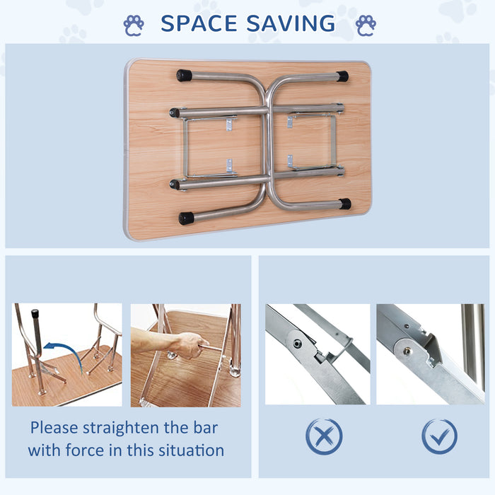 Assembling this premium grooming table is straightforward, allowing you to get up and running quickly. When not in use, it conveniently folds down for efficient storage, thus making it perfect for spaces of all sizes.