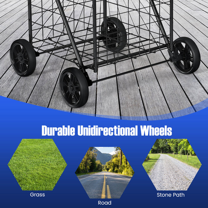 Embrace versatility with a cart designed to fold to a compact size for easy storage and transport. Tuck it into your car trunk for spontaneous shopping trips or slot it neatly into your home's storage spaces.