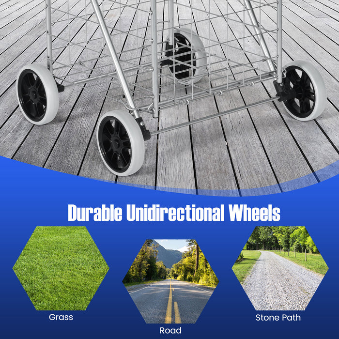 Welcome to an all-new level of convenience for your shopping experiences and more. Our newest grocery utility cart is the perfect ally for a variety of errands, from bustling market days to nurturing your garden. Discover a fusion of utility and effortless portability.