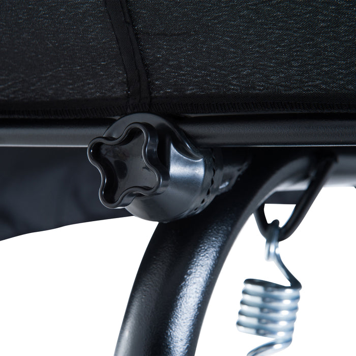 No need to worry about the sun's glare or unexpected drizzles, as the swing comes equipped with a weather-resistant canopy. This innovative overhead feature can be adjusted to various angles, providing a sanctuary from UV rays and light precipitation, ensuring your outdoor relaxation is uninterrupted.