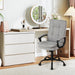 Elevate your work setup with this luxurious and functional office chair with thickened cushions. The sophisticated chenille surface offers a sumptuous seating experience, complemented by the soft sponge padding and additional armrests that ensure supreme comfort even during long work hours. Its height-adjustable design, ranging from 104-114 cm, provides flexibility to match various table heights effortlessly. Enjoy moments of relaxation with the innovative rocking function, easily adjustable using the tension knob. More details of the office chair showcase better workmanship: the chair's sturdy metal frame guarantees long-lasting durability, coupled with a class 3 gas lift cylinder for safe and secure adjustments. Its stable 5-star base ensures reliability, while the smooth-rolling universal wheels allow for seamless movement across different surfaces. With its modern design, this chair is a versatile addition to any study room, bedroom, or office space. Bullet Point: Comfortable Sitting Experience:The surface of the chair is made of skin-friendly chenille surface for a comfortable feeling. And the soft sponge padding as well as the extra armrests ensure that you won't feel fatigue even if you sit for a long time to work. Height-adjustable Design: You can adjust the height of the chair within the range of 104-114cm, which allows this chair to be used with tables of different heights. The adjustment is very simple: you just need to push the height adjustment lever. 134° Rocking Function: The rocking feature allows you to relax your body and mind while working or studying. Using the rocking tension adjustment knob to adjust the resistance to rocking. With convenient lever, you can easily pull it out for rocking and in for locking. Reliable Structure: The frame of this chair is made of heavy-duty metal for long-lasting service. The high quality class 3 gas lift cylinder ensures the safety of the adjustment system. In addition, the stable 5-star base makes our office chair more reliable. Easy to Move and Multiple Uses: Flexible universal wheels allow you to easily move this office chair to any place. The wheels run smoothly and noiselessly on different floors, and this stylish chair with modern design is suitable for various scenarios such as study room, bedroom or office.