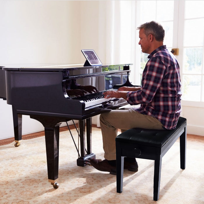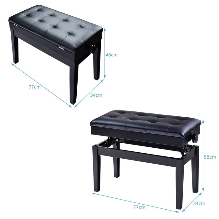 Introducing an exquisite addition to your musical journey, this height-adjustable piano stool embodies class and versatility for any pianist. Designed to cater to both adults and children, its adjustable feature ensures a comfortable experience for musicians of all statures. Its sleek black finish not only complements any décor but also doubles as an alluring piece of furniture.