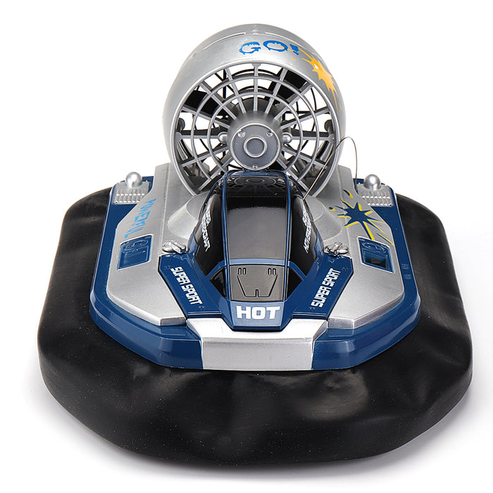 The RC Hovercraft is a remote controlled boat that can go on any surface. It has the ability to tackle any terrain and be able to drive over it without getting stuck or flipping over. RC hovercrafts are great for kids because they are easy to use, even if they have never handled RC vehicles before. RC hovercrafts come in many different sizes so there is one for every skill level! RC hovercrafts are fun to use because you can drive them in water, mud or sand and this one travels at up to 7 kilometers per hour!