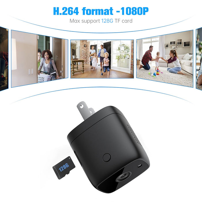 The Wi-Fi nanny camera has hotspots, making it capable of recording without Wi-Fi. Simply plug it into a wall outlet and insert an SD card (not included) to enable the mini Wi-Fi camera to auto-record HD video files. The USB camera then automatically records and overwrites the oldest files once the SD card is full, ensuring continuous monitoring.