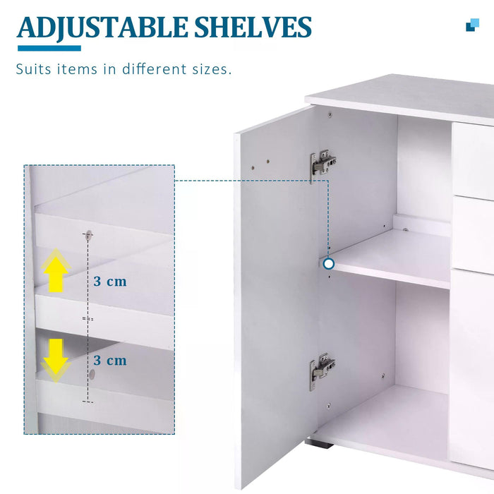 Maximize your space with this cabinet's abundant storage options. It features a sizable main compartment with an adjustable shelf for items of various sizes. Two smooth-gliding drawers provide additional privacy for your belongings, while a secondary side cabinet offers extra space - all capped with a generous worktop for displaying your favorite décor.