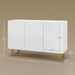 Envision a seamless blend of practicality and refined aesthetics gracing your living space. This contemporary sideboard, with its radiant high-gloss facade and striking golden accents, offers both ample storage and a dash of elegance to any room. Whether housing your wardrobe essentials, dinnerware collection, or treasured keepsakes, this versatile piece will keep your belongings orderly and out of sight, while its adjustability ensures accommodation for an array of items.