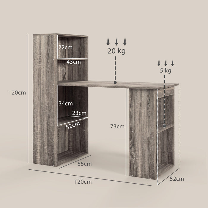 - Overall dimension: 120L x 55D x 120Hcm, Tabletop to Floor Height: 73cm. Weight capacity: 20kg. Assembly required. With bookcase on left or right accords to your placement.