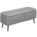 Style and storage? Do it in unison with this HOMCOM ottoman. Keeping it neutral with the light grey colour, this is a versatile piece which welcomes itself easily into many home style. It comes with a 92 x 31cm inner storage space - great for keeping small pieces together. The lid is padded so it works as an occasional seat. Complete with steel legs which support it, however you're using it.