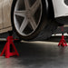 Upgrade your car maintenance tasks with HOMCOM set of two car jack stands. Built from carbon steel and cast iron, these heavy-duty car axle stands offer 6-ton load capacity in total. The ratchet bar is adjustable for different works, with a large support surface. A stable pyramid base with four wide feet enhances overall stability, securely lifting your vehicle with ease. Easy to store, the car stand set is always ready for your next repair or tyre change.