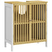 Retro charm for your bathroom, merged with adjustable storage. This HOMCOM under sink unit features a 'U' slot, which fits snugly around sink pipes - brings in storage without taking up a lot of unnecessary space. Inside, it features a three-position adjustable shelf, so you can set it to the position you want. Made from a bamboo blend, this sink storage cabinet is a durable piece, suitable for everyday use.