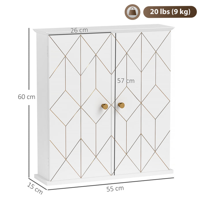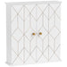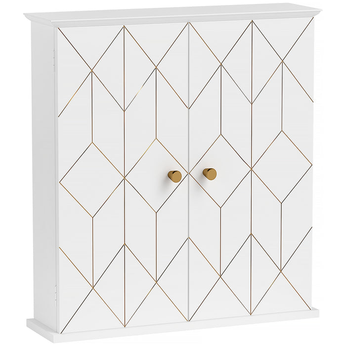 - Modern design: This wall storage cabinet is finished in pure white and accented with gold tone geometric elements applied to the door. Classic rectangular appearance with golden geometric line will provide you with a new virtual impact on your house