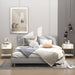 - Drawer and shelf: Both white bedside tables offer room for keeping bedtime essentials close to you. Flat tabletop means display space for an alarm clock and similar