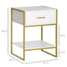 Easy elegance for night times, comes in the form of these two HOMCOM bedside tables. The white body is complemented by the gold coloured frame for a beautiful look: as nightstands, side tables, end tables and more, they look great wherever you place them. They both come with a drawer, bottom shelf and flat tabletop for plenty of storage. Use together in one room, or separately - wherever takes your fancy!