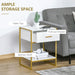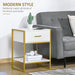 Simple, sophisticated style comes in the form of these bedside tables, from HOMCOM. It blends together a gold tone frame with a white body - a furniture piece which matches easily with lots of different decor. The design comes with a top drawer, bottom shelf and flat top - plenty of storage room. The frame is made from steel for strength, with a matching slimline handle to open and close the drawer easily.