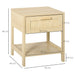 - Natural wood effect complements the feature rattan panel on drawer