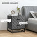 Add a splash of modern minimalism to your bedroom with the HOMCOM small bedside table set. Featuring a chic diamond-patterned veneer atop a sleek black steel frame, these bedroom drawers combine style with functionality. Each end table includes two drawers on smooth alloy rails, providing optimal storage while balancing your bedroom décor effortlessly. This pair fits any contemporary space and is suitable as a small side table or bedside table.