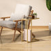 - Modern elegance: This c shaped side table combines a sleek gold tone steel frame with a tempered glass tabletop, enhancing any room with its simple yet elegant design