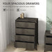 Transform your space with the fabric chest of drawers from HOMCOM, featuring four large drawers that effortlessly house up to 60 T-shirts or 16 jeans each. The luxurious velvet-like surface brings a touch of elegance and sophisticated charm to any room, making it doubles as a cosy bedside table or chic side table. Whether you place it in your bedroom or living room, the HOMCOM 4 drawer chest of drawers provides both practical storage and an aesthetic appeal that enhances your interior space.