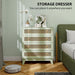 Bedroom drawers, with a subtle difference. This HOMCOM dresser comes with four drawers - each fitted with a middle rattan weave panel; this subtly brings a touch of the outside into your indoor styling. Made from particle board for a strong structure, finished in a light green look natural beauty. The four-legged base provides plenty of support, and this drawer chest comes complete with anti-tipping straps to secure a wall safely.