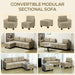 Discover the versatility of the modular sectional sofa from HOMCOM, a clever blend of style and functionality. Transform it from a 2/3 seater fabric couch to an L-shaped corner sofa or even a single small sofa with ease, thanks to its customizable modules including an ottoman. Each section hides a storage space, suitable for decluttering your living room or home office, all wrapped in a tufted flannel-feel fabric.