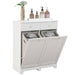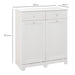 Give dirty laundry a cool collection spot: this HOMCOM tilt out laundry hamper. In a clean cut boxy shape - white in colour - this is a modern and versatile piece welcome for practically any style interior. Pull the handle on the bottom doors to reveal two 52 x 32cm hampers - keep dirty garments separated how you see fit. The small drawers above are for smaller items. Attach this bathroom laundry storage unit to a wall safely with the included anti-tipping straps.