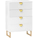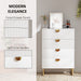 - Elegant design: White chest of drawers has two top textured drawer panels, with gold tone handles. A beautiful addition to your home.