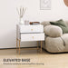- Elegant design: White bedside table has textured drawer panel, with gold tone coloured handles. A beautiful addition to your home.